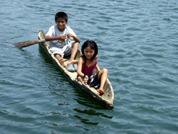 Na een half uur houd de man eindelijk op en verlaat de bus. Onderweg stappen er steeds meer mensen in totdat het hele gangpad volstaat en de mensen half uit de deur hangen. Het is een stoffige, hobbelige rit over onverharde bergwegen. Onze nieren trillen er zowat uit. Na ruim 5 uur komen we aan in het dorpje El Estor. Hier moeten we nog even zoeken naar een busje voor het laatste stukje naar onze boot in de Rio Dulce. We treffen een mooi busje en we zijn met maar enkele passagiers. We zitten voorin naast de chauffeur die graag een praatje wil maken. Al babbelend zijn we na een uur terug op de boot. << terug logboek volgende >> |