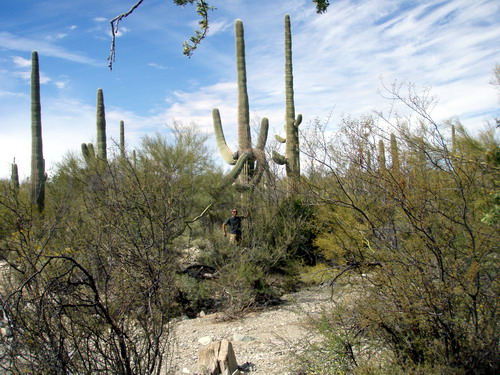 USA februari/maart 2014: Onze camper produceert een mooi ronkend geluid met zijn sterke V8 motor van 3,5 liter. Dat is prachtig als je de bergen in moet, maar voor het overige verbruikt hij volgens Amerikaanse normen. En dat is volgens Europese heel veel. Het verbruik is 1 op 4 oftewel 9 miles per gallon. En dan rijden we maximaal 80 km/u. De benzine is dan wel weer heel voordelig, maar doordat de afstanden zo groot zijn, verstoken we toch nog heel wat. Bij enkele grote supermarktketens is het toegestaan om op hun parkeerterrein te overnachten. Tot nog toe waren we de enige op deze plekken, maar hier in het zuiden van Arizona zijn er meer die dat doen. Op weg naar het 'Organ pipe' national park komen we langs een klein herdenkingsteken. Het vertelt over de overgave van de Apache indianen met hun leider Geronimo. Zo eindigden in 1886 de gevechten met de indianen en kwam er vrede. Even verderop ligt het plaatsje Bisbee met een grote koper-mijn. Er is ook een museum bij een oude kopermijn die nu voor de toeristen toegankelijk is. Het dorpje is nog geheel in westernstijl, maar bevat achter de facades alleen nog maar souvenir winkels, bars en galleries. Even verderop ligt het westerndorpje Tombstone. Voor wie van westerns houdt, zal de film 'Gunfight at the OK Corral' bekend voorkomen. De OK Corral bestaat nog steeds en ook de historische plek waar sherriff Wyatt Earp en Doc Holliday de slechterikken doodschoten. Er was in die tijd al een lokale krant waarin verslag werd gedaan van het vuurgevecht. En ook veel foto's uit die tijd zijn bewaard. Het dorpje is redelijk origineel gebleven, al moest er wel wat herbouwd worden na een grote brand. In Tombstone zijn een paar cafe's te vinden die geheel in western stijl zijn zoals wij die uit de films kennen. We gaan er gezellig een hamburger eten en worden bediend door een schaars geklede dame. Veel bezoekers wanen zich cowboy en kleden zich ook zo. Het maakt zo wel een levendige indruk. We gaan weer op weg naar onze volgende bestemming in Arizona, het nationale park 'Organ pipe'. Er komen veel en grote cactussen voor en dat willen we wel eens van dichtbij bekijken. De camping in het park is prachtig aangelegd. We staan met onze camper tussen de cactussen in. Van hieruit kun je een aantal wandelingen door de woestijn maken. Je wordt nog gewaarschuwd om geen contact te maken met eventuele illegale immigranten. Het park grenst nl.aan Mexico en wordt regelmatig voor mensensmokkel gebruikt. Wij komen echter voornamelijk cactussen tegen. Na een paar verschillende wandelingen in het park gaan we weer verder richting het westen. We overnachten gratis op een speciale RV (dit is de afkorting voor onze camper) parkeerplaats bij het Quechan casino dat in het Quechan indianen reservaat ligt. Veel indianen reservaten hebben casino's ontdekt als een goede bron van inkomsten. De indianen hebben immers zelfbestuur binnen hun reservaat en omzeilen zo handig de federale wetten. Als dank voor het gastvrije verblijf, verliezen we een paar dollar op de speeltafel. We gaan naar het Joshua Tree national park. Door de hoogte- verschillen in het park, verandert de omgeving voortdurend van vruchtbaar tot woestijn. Het is er prachtig om door heen te rijden. We overnachten op een prachtige plek tussen enorme granietblokken. We maken een paar mooie wandelingen door het park. Het een is nog mooier dan het andere en zo schieten we heel wat foto's. Op het einde van de dag maken we nog een wandeling van 2 uur naar een oase in de bergen.Deze plek heet:"49 trees" en inderdaad, na een fikse wandeling door de woestijn komen we bij een prachtige oase waar inderdaad nog 49 palmbomen staan. Nadat we overnacht hebben op een BLM (Bureau of Land Management = eigendom van de staat) camping in de Mojave woestijn, wij waren de enige die daar stonden in de middle of nowhere, gaan we naar Los Angeles. Het plan is om naar de filmstudios te gaan. Een dagje naar Universal Studios gaat ons echter zo'n $ 200 kosten en dat vinden we echt te veel. We zijn al in World Disney Hollywood en Movieworld geweest en aan de folder te zien is dit meer van het zelfde. Het is al laat en we vinden een parkeerplek bij de Home Depot in de stad waar we kunnen overnachten. De volgende dag regent het en besluiten we om met de camper wat rond te rijden.Hierdoor krijgen we een beeld van het veelbesproken Hollywood en Beverly Hills. In Beverly Hills wonen nog veel bekende filmartiesten maar omdat hun huizen geheel achter een omheining ligt krijg je weinig te zien van al hun rijkdom.In de middag knapt het weer wat op en parkeren we de auto net achter Hollywood Boulevard omdat de boulevard op een gegeven moment afgesloten is. Er staan grote dranghekken en overal loopt politie. Wij lopen een stukje en vragen wat er aan de hand is. Blijkt net dit weekend de Oscaruitreiking in het Derbytheater te zijn zodat we een klein beetje van het evenement kunnen proeven.We mogen er ook overnachten en dus laten we de camper daar staan en gaan met de metro naar het oude centrum. Hier is nog een gebouw bewaard gebleven uit de pionierstijd. 's Avonds gaan we chinees eten in de Chinatown van LA. Het is een Sichuan restaurant met spicy gerechten. We bestellen extra spicy 'General Tseng chicken', maar kunnen geen peper proeven. De ober legt ons bij navraag uit dat ze de gerechten aangepast hebben aan de Amerikaanse smaak. En die Amerikanen hier lusten geen peper. In tegenstelling tot bv. de Texanen die wel heet eten. Het blijkt ook de avond van de Oscar uitreiking te zijn. We vonden het al zo vreemd dat de halve Hollywood Boulevard was afgezet en dat er zo veel politie rondliep. Helaas kun je door al deze veiligheids maat- regelen niets zien van het Oscar gebeuren. De volgende dag nemen we alsnog een kijkje en kunnen we lopen waar gisteravond de sterren liepen. De stoep hier ligt vol met tegels met namen van bekende en minder bekende filmsterren, regisseurs, artiesten, muzikanten en bands. We rijden weer verder en gaan nu naar het Sequoia national