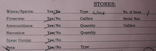 munitie, narcotics en huisdieren had ik Yes doorgestreept. 's Avonds eten we heerlijke verse tonijnsteaks die we letterlijk